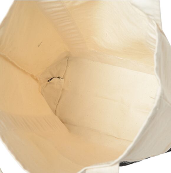 綿100%で作られたナチュラルカラーのバッグは素材に天然のままの綿花を使用しているため、藁や草木のような匂いがあったり、